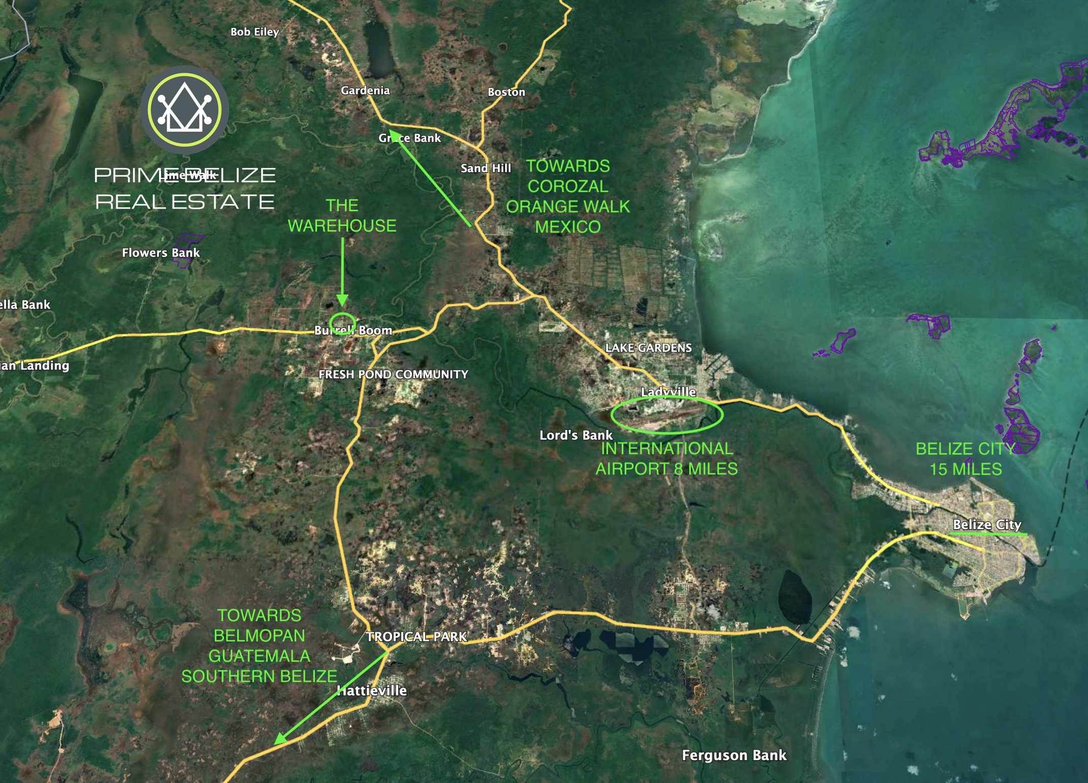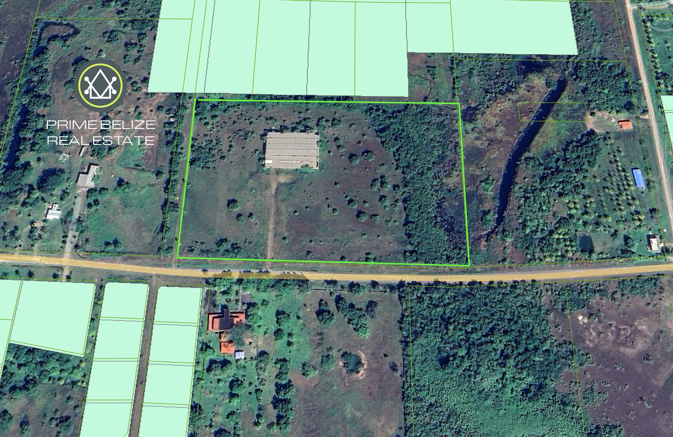 Located in Burrell Boom Village, it offers quick connections to all major highways in Belize : Belize City only 15 miles away, the Philip Goldson Highway, the international airport only 8 miles away, making it ideal for logistics or distribution.