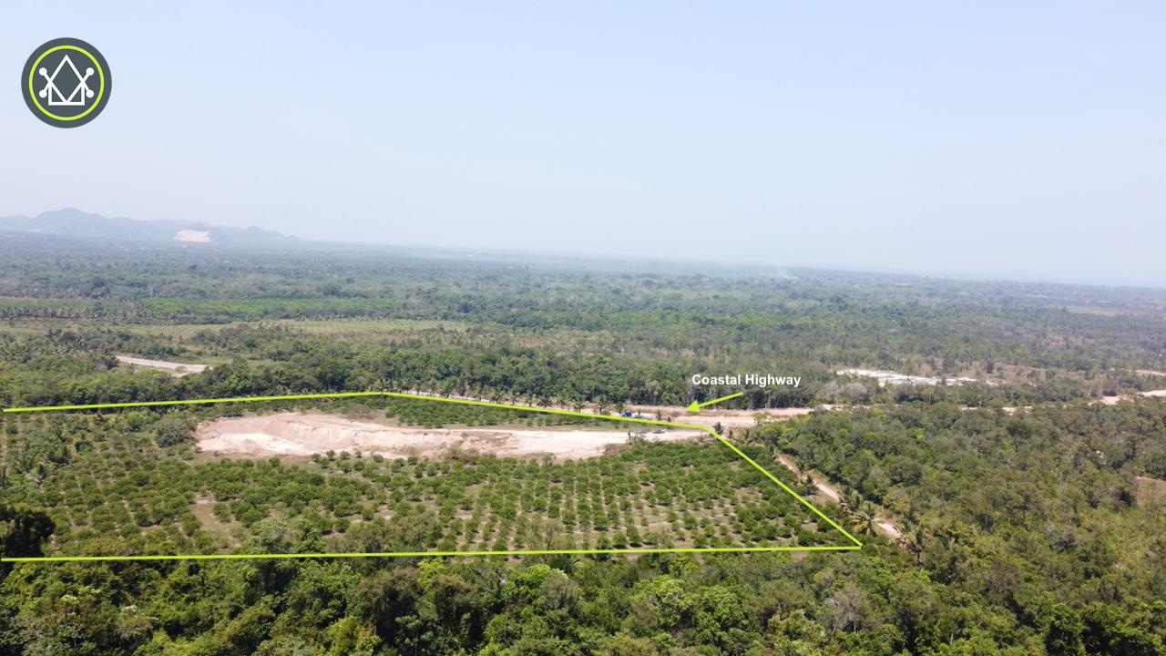 Nestled just off the burgeoning coastal roads, this 30-acre property presents a canvas for your dream retreat. Embraced by a picturesque border of coconut trees, this property boasts direct road access along the coastal highway, making it an ideal canvas for diverse development ventures, be it commercial or residential. The land features citrus groves, with essential amenities such as electricity and water in place, while internet and cable services can be easily installed. A small stream meanders nearby, adding to the property’s charm.