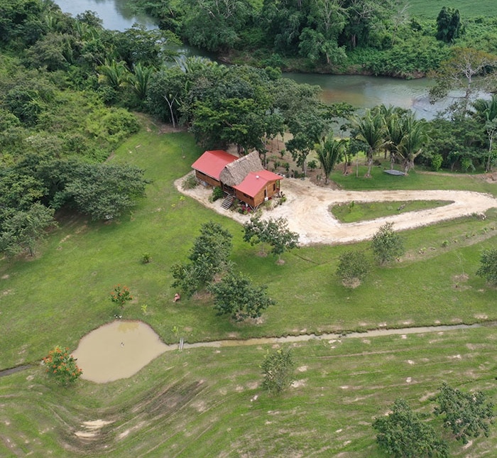 Nestled along the Belize River, this serene 30-acre farm offers breathtaking views, rich farmland, and a peaceful retreat. The property features a fully furnished 1,290 sq. ft. wooden home with rustic elegance, two bedrooms, two bathrooms, and a thatched patio separating the master suite for privacy. A separate wooden cabin serves as a caretaker’s house or potential guest room.