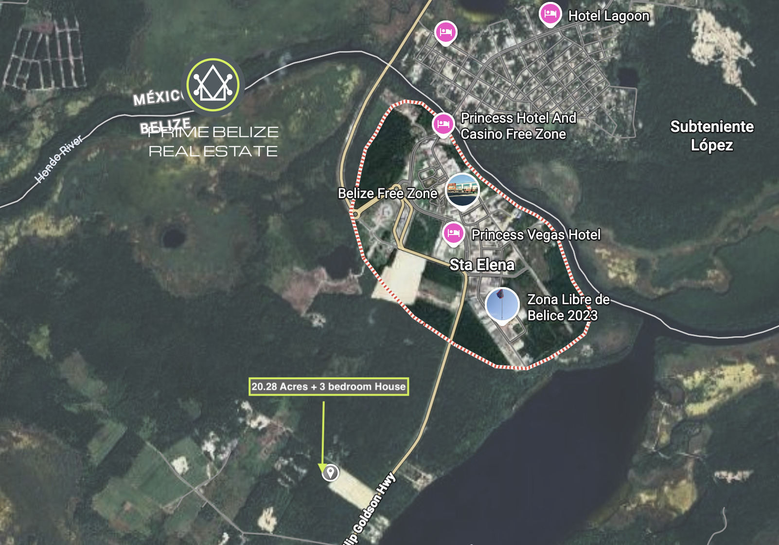 This 20-acre double-lot property (8.876 acres + 11.49 acres) is located in the desirable Four Mile Lagoon area of Santa Elena, Corozal, an elevated, highland area known for not flooding during rainy or hurricane seasons. The property sits just 0.2 miles west of the Philip Goldson Highway, offering excellent accessibility while maintaining a peaceful, private setting.