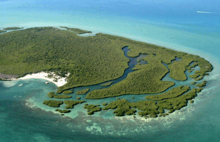 A 100% private island, approximately 20 minutes boat ride from Belize City. So in reach from the international airport within 45 minutes, It has pristine natural beaches, inland rivers, deep water access, a water well, a boat dock and some basic infrastructure is already in place.