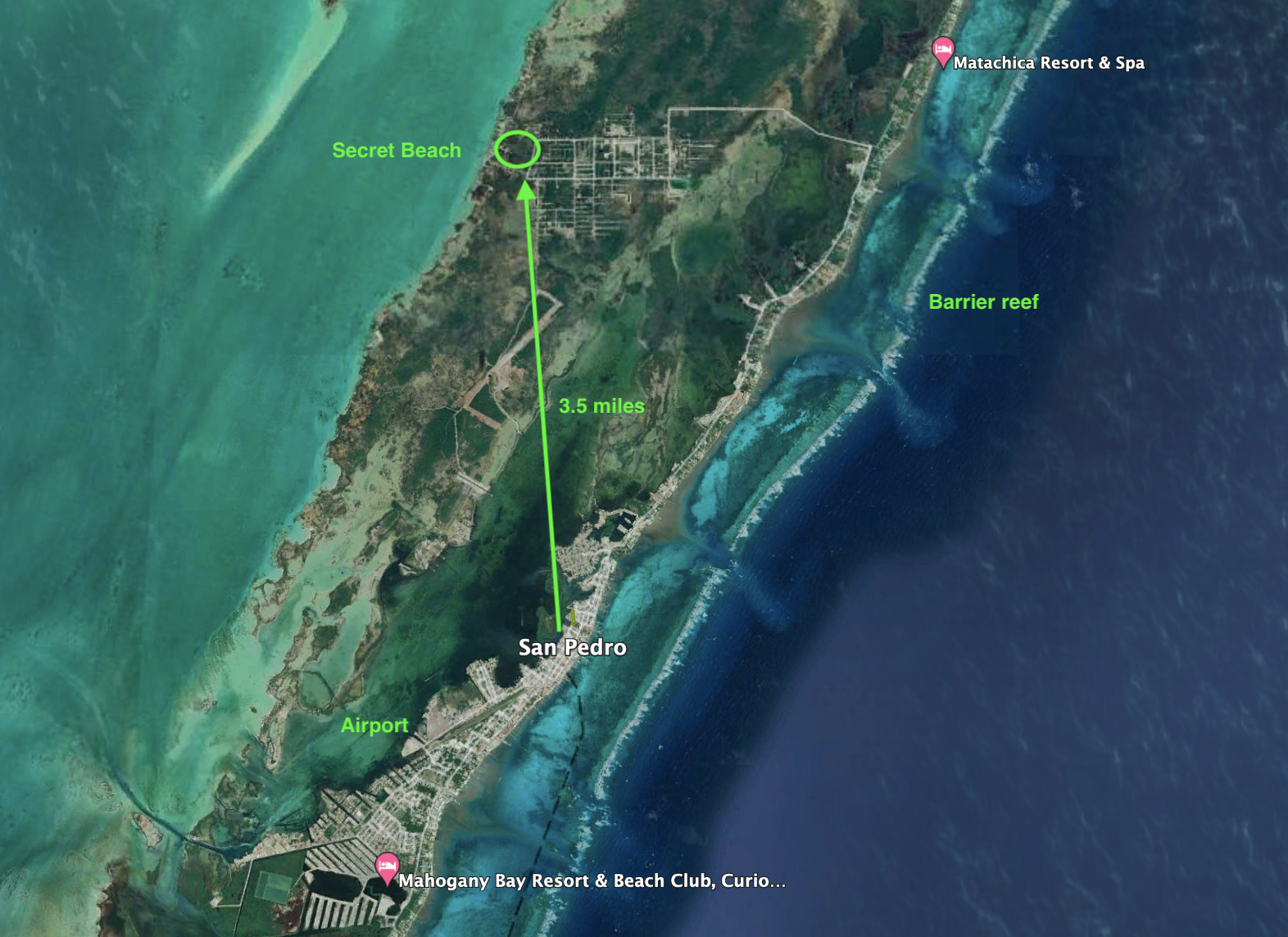 Located on the West Coast of Ambergris Caye, about 3.5 miles from the town of San Pedro, Secret Beach has become one of the top destinations of the island. Tourists and investors are attracted to Secret Beach for the beautiful beaches and pristine Caribbean Ocean.