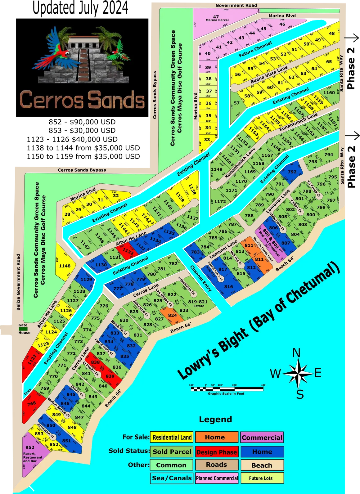 Starting on the first canal and going back into the second level these lots are in the most developed area of Cerros Sands